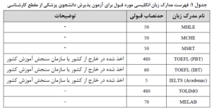 5 ) دارا بودن مدرك زبان انگلیسی مطابق جدول 1 .