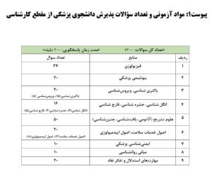 دروس فیزیک پزشکی ، شیمی ، جامعه شناسی و ژنتیک از آزمون لیسانس به پزشکی حذف شده است